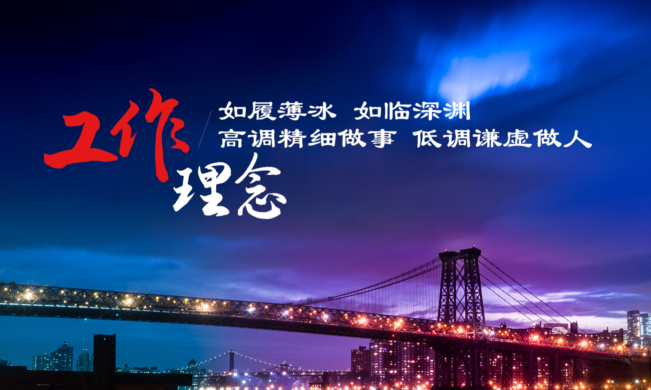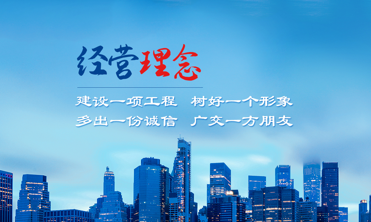 公司以建造合格建筑產品、助力國家建設為使命,以構建幸福企業(yè)為愿景。公司深知助力國家建設為使命所擔負的責任,故以“如履薄冰、如臨深淵、高調精細做事、低調謙虛做人”為工作理念,建立了完善的管理制度和質量保障體系,以人為本,構建和諧環(huán)境。公司牢固樹立安全意識、文明意識、質量意識、環(huán)境意識和精品意識。在公司質量管理過程中貫徹“雙百”方針:即工程合格率100%,客戶滿意率100%。以“建設一項工程,樹好一個形象,多出一份誠信,廣交一方朋友”為公司經營理念。